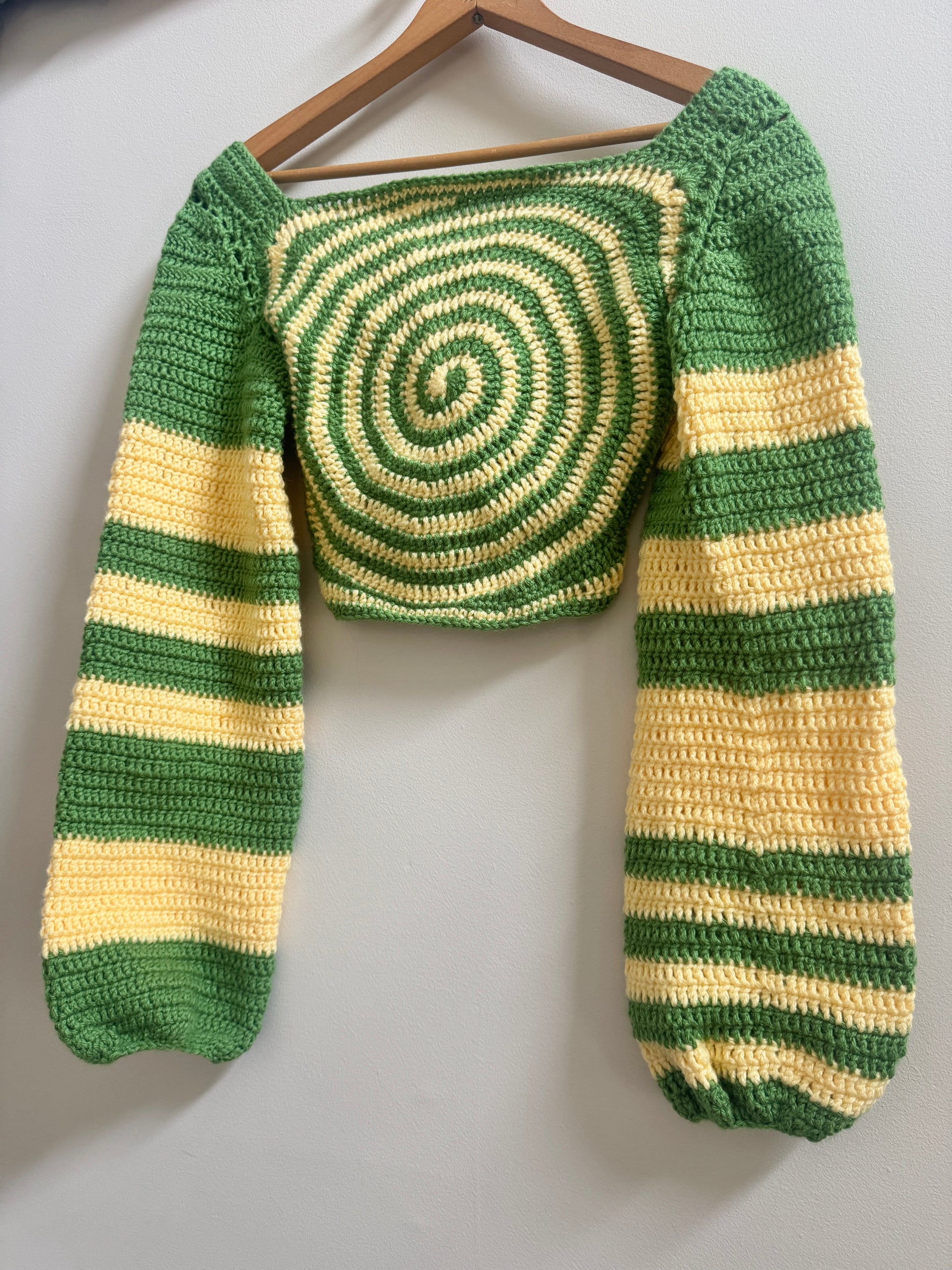 The Camellia Top is a showstoppping two-tone crochet crop top with detachable sleeves. Wear sleeveless in the summer or add them on to stay cozy in the cooler months!