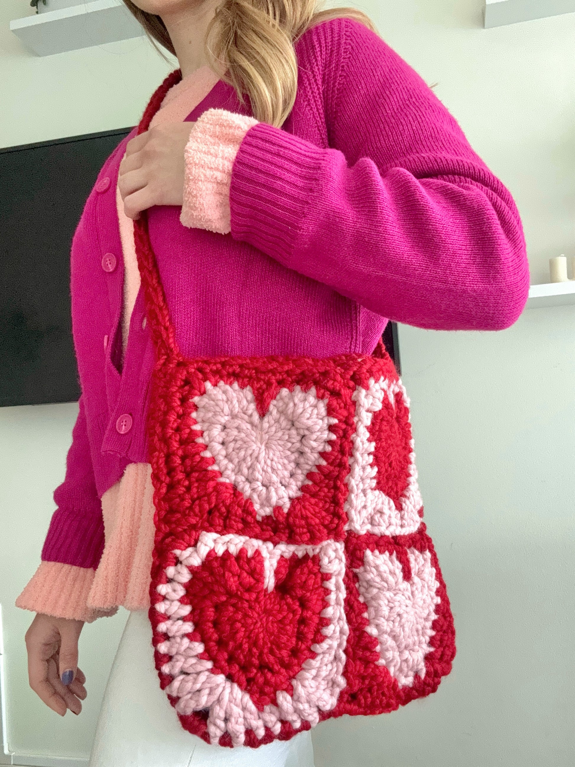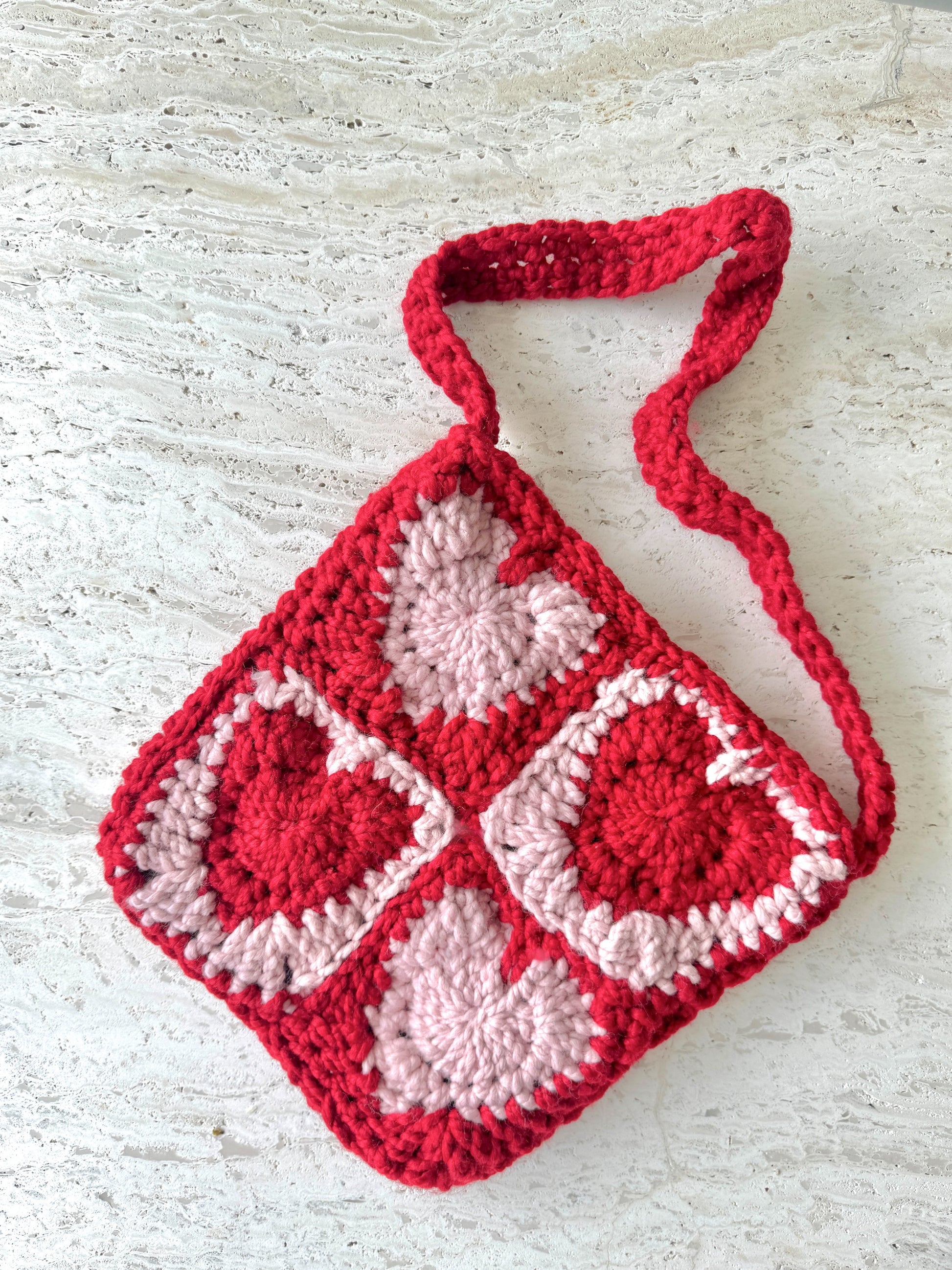 Spread the love with the adorable Hearts Full Crochet Tote Bag!