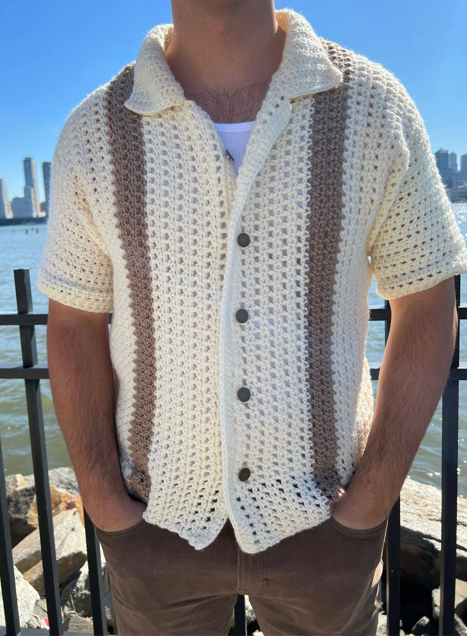 Fique confortável e elegante nos meses mais frios com esta blusa masculina moderna de crochê. Tamanhos extras (XL e XXL) incluídos!