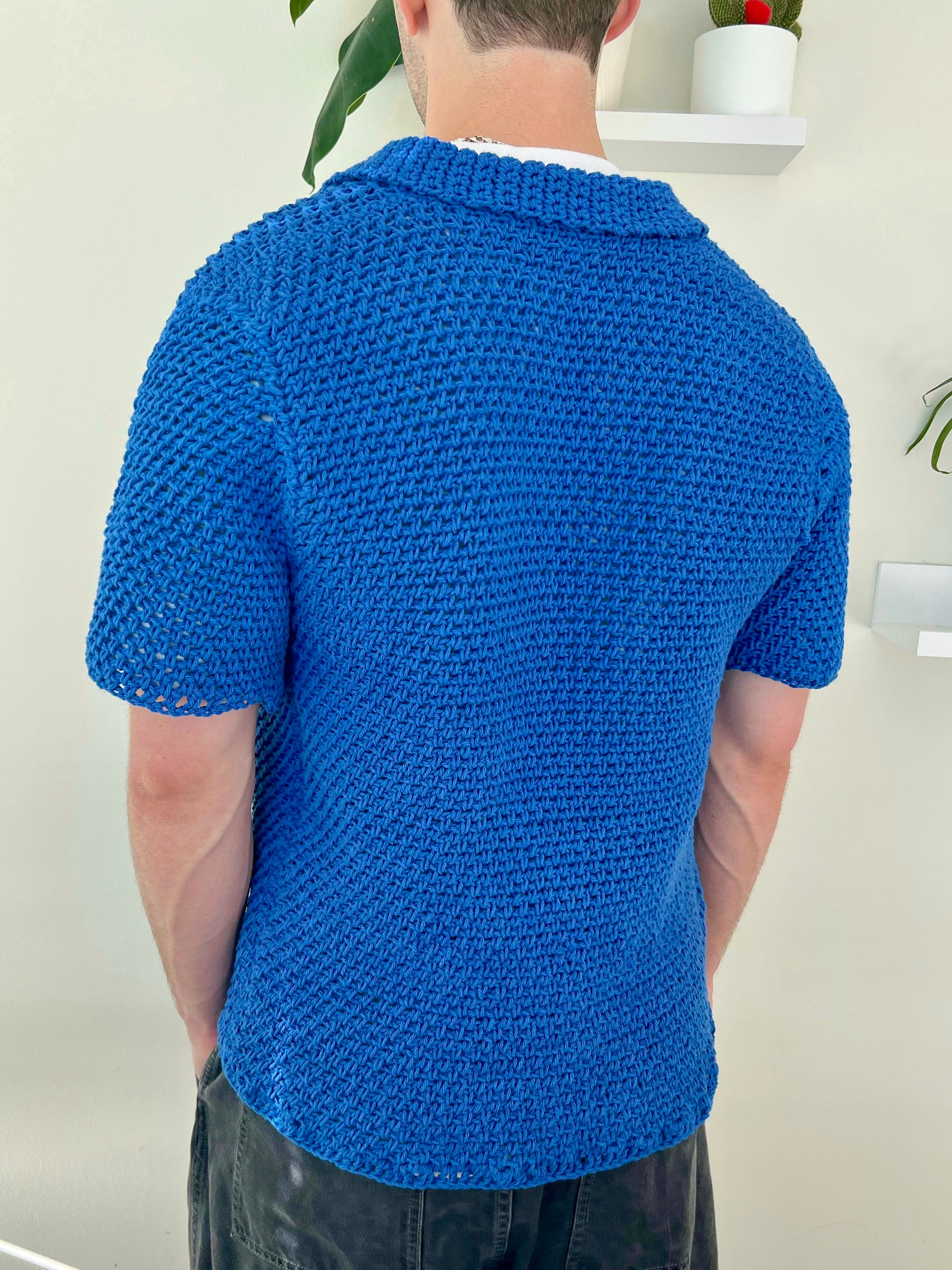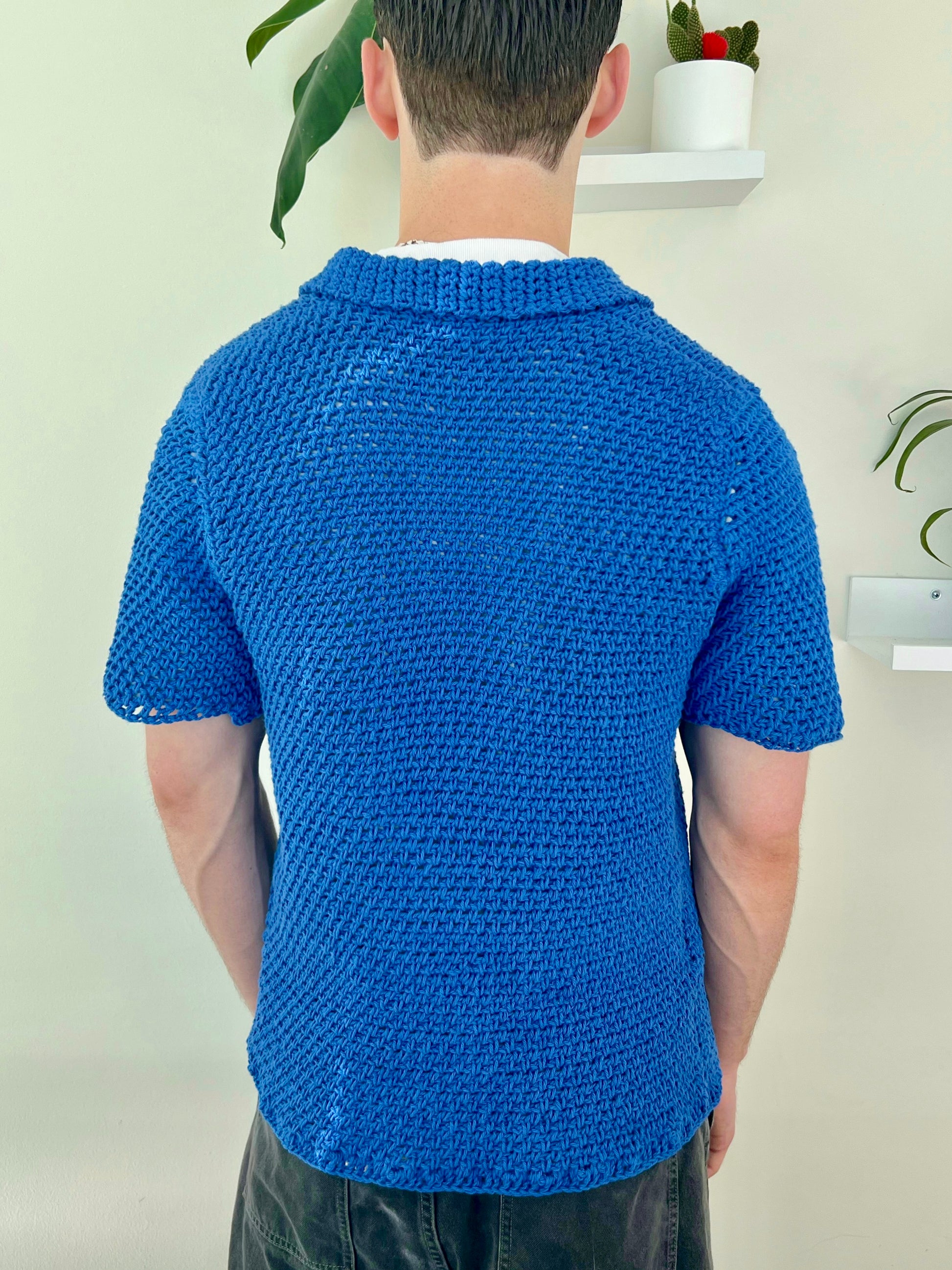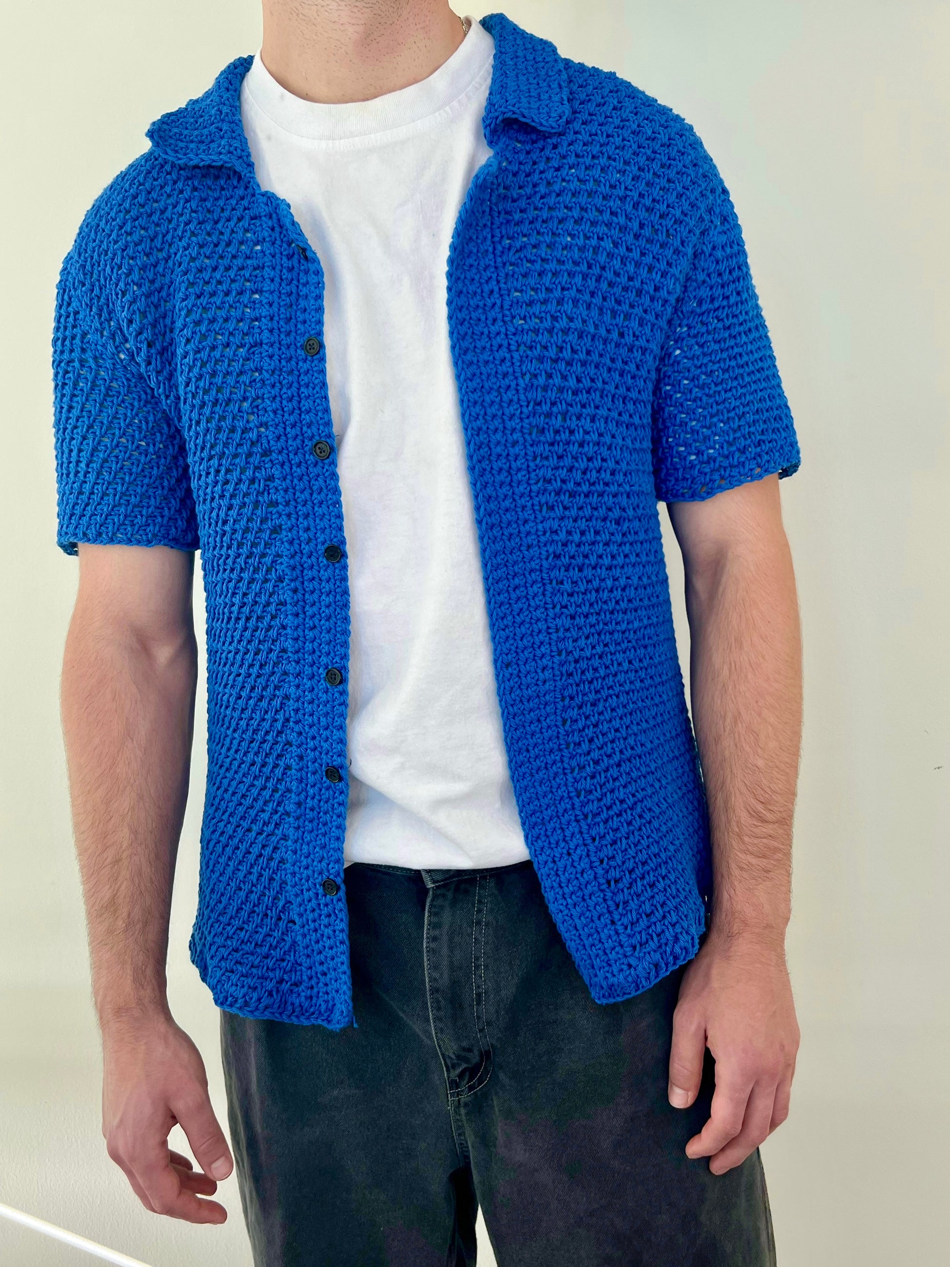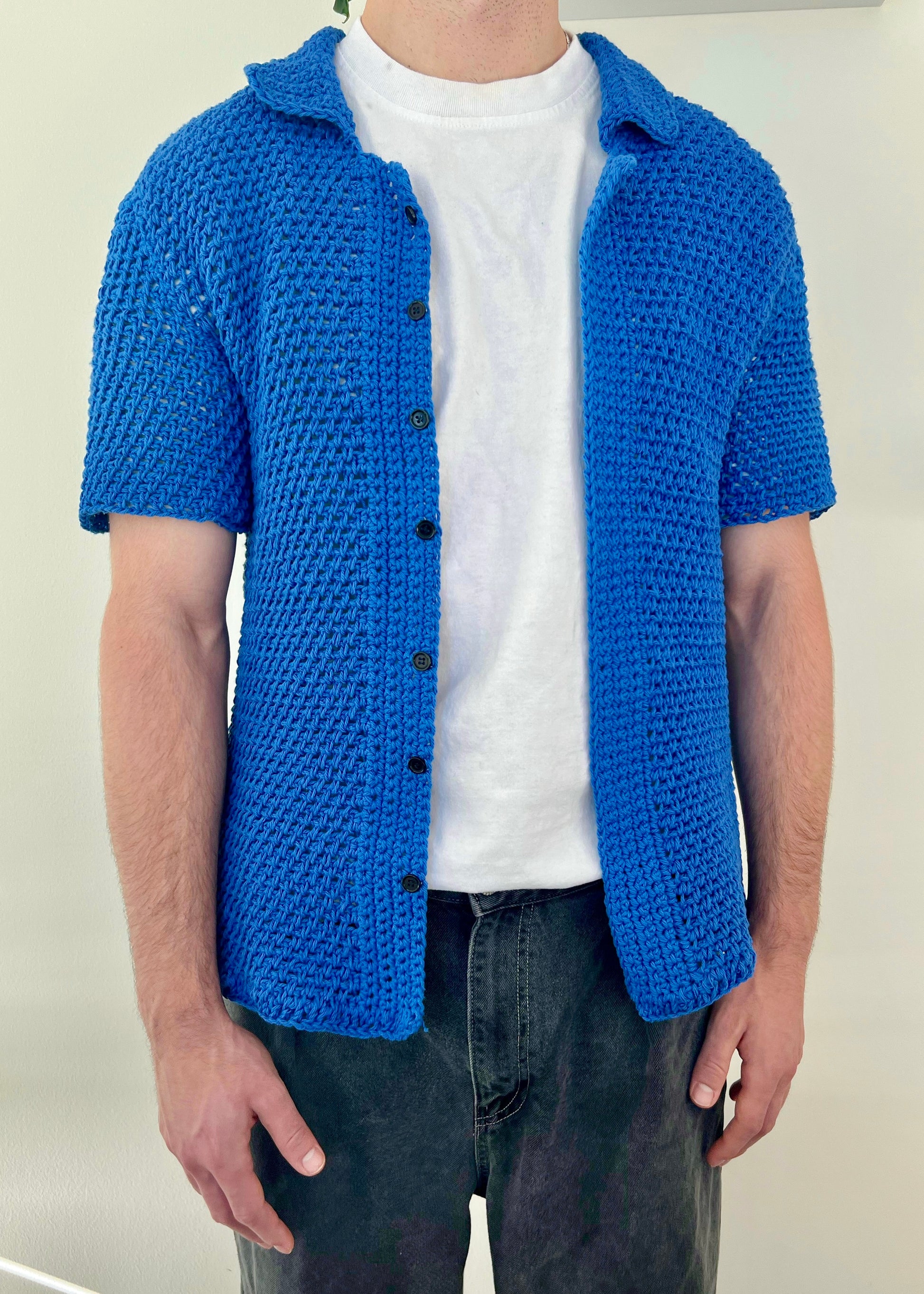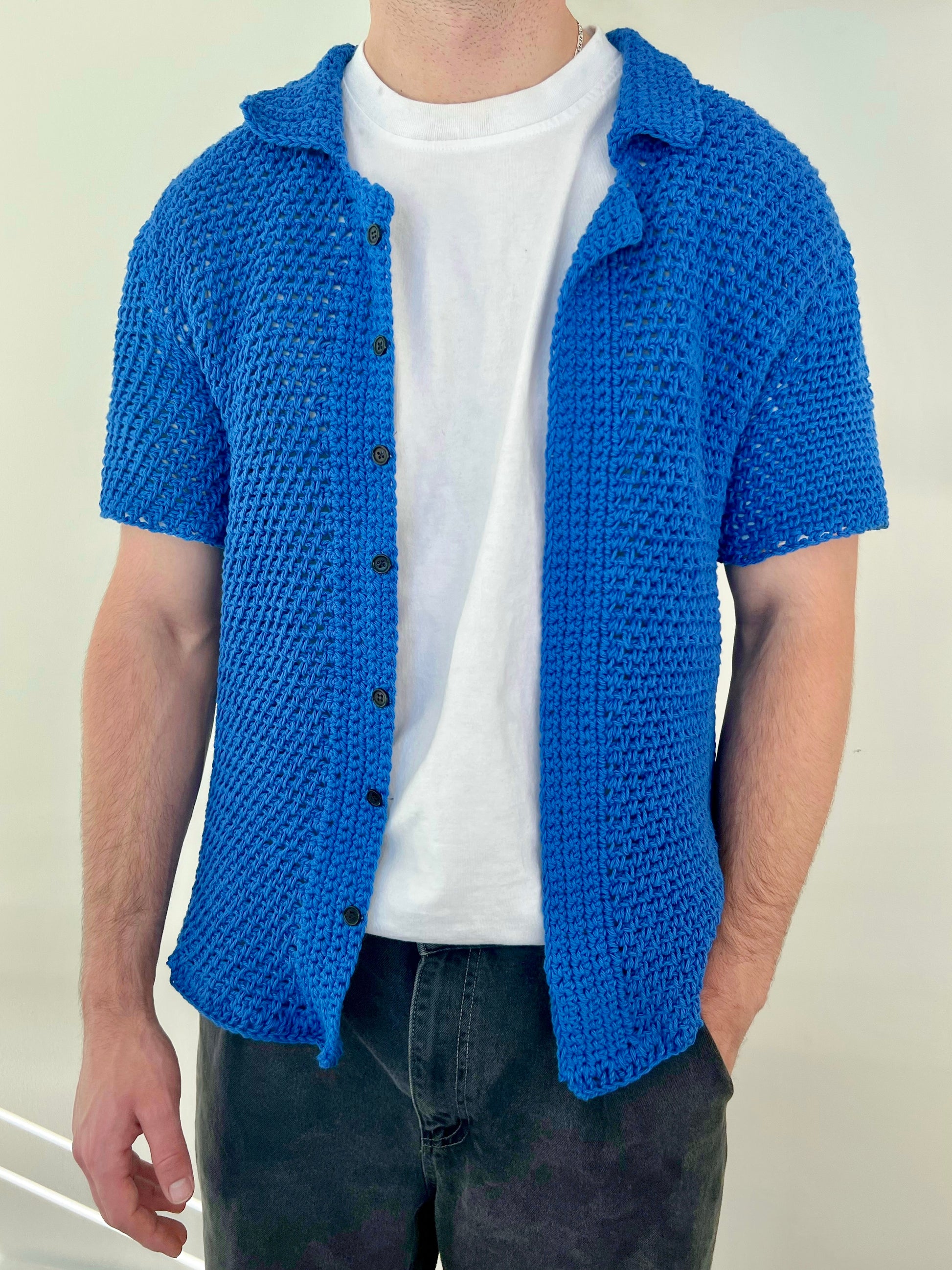 Elevate your wardrobe with the Kent Top Crochet Pattern, a classic men's crochet button-down top.