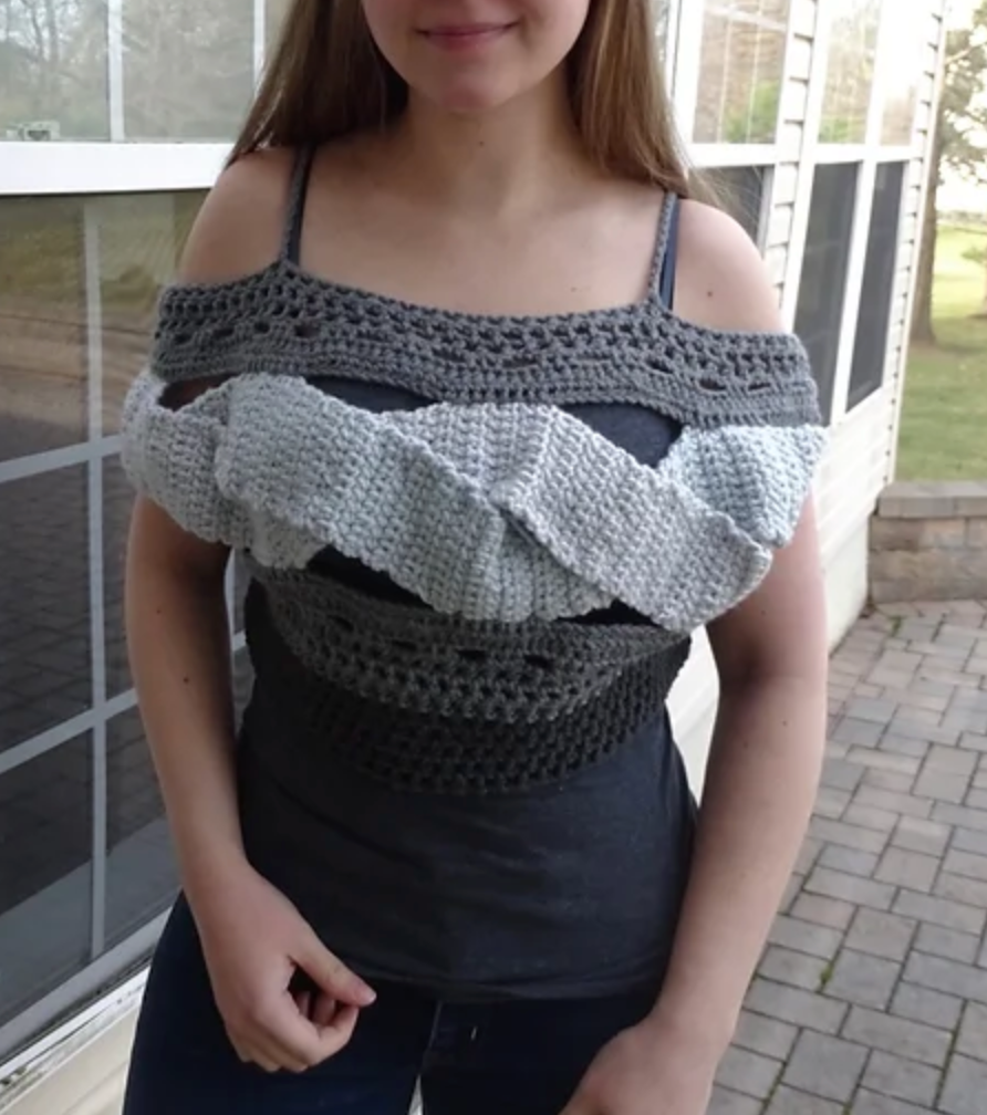 Este lindo suéter cortado em escala de cinza é perfeito para sobrepor uma camisola e pode ser feito por iniciantes e profissionais! Além disso, é reversível!